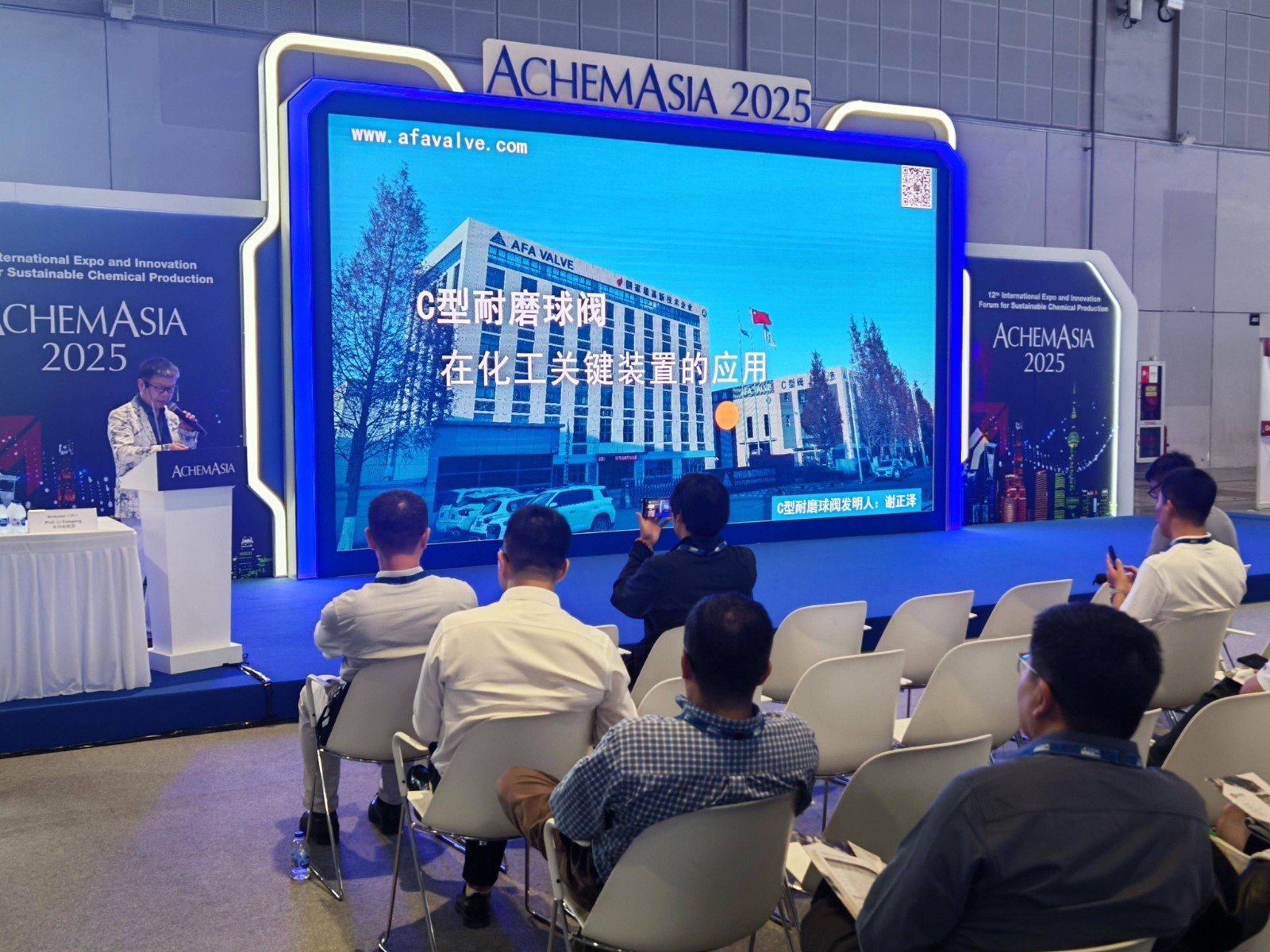 德希玛展览有限公司CIESC - 中国化工学会联合主办的2025年第十二届阿赫玛亚洲博览会。此次展会汇聚了生物制药行业的众多专家、学者和企业代表,是行业内交流技术、分享经验的重要平台。AFA公司在会上精心设置了展台,全方位展示了公司C型耐磨球阀的新技术和新产品。展台前人头攒动,参会代表们对C型耐磨球阀表现出了浓厚的兴趣,纷纷驻足咨询、交流。